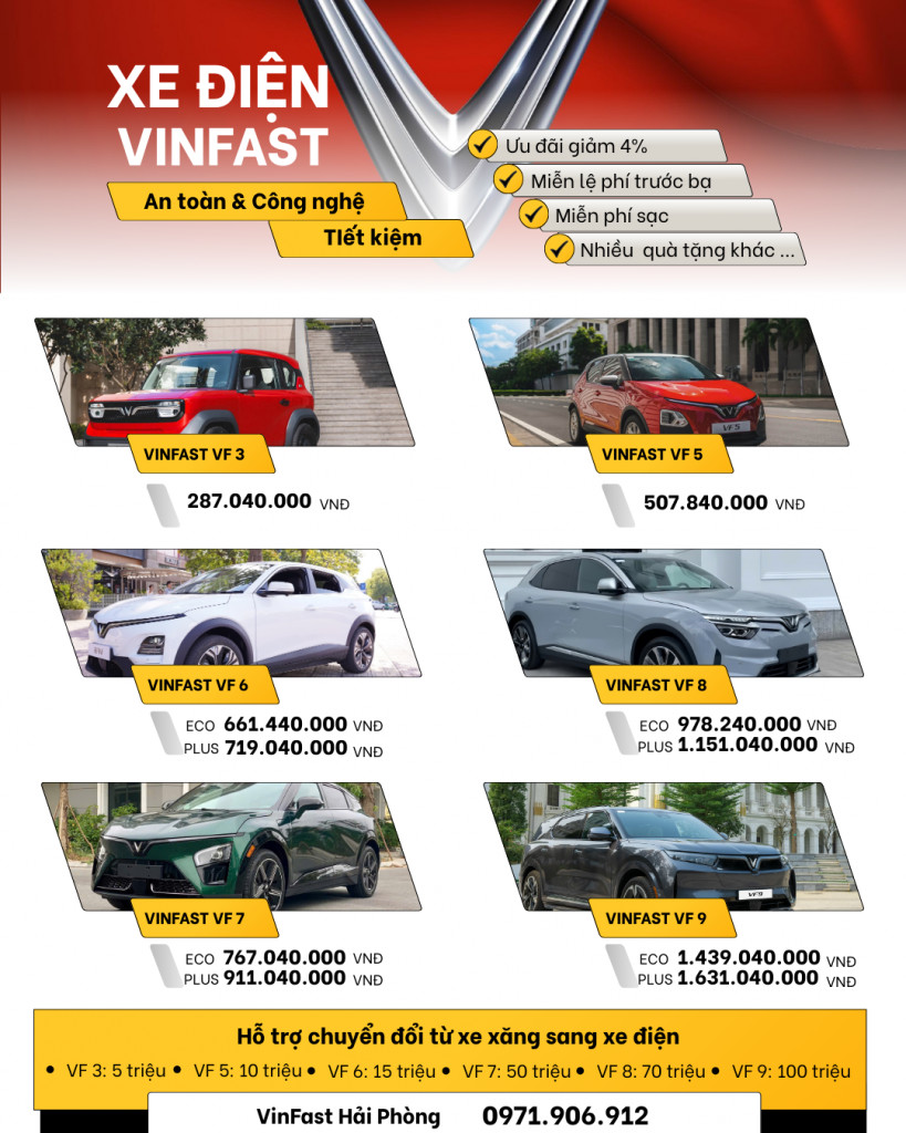 • Hỗ trợ chuyển đổi từ xe xăng sang điện lên tới 100 triệu đồng.