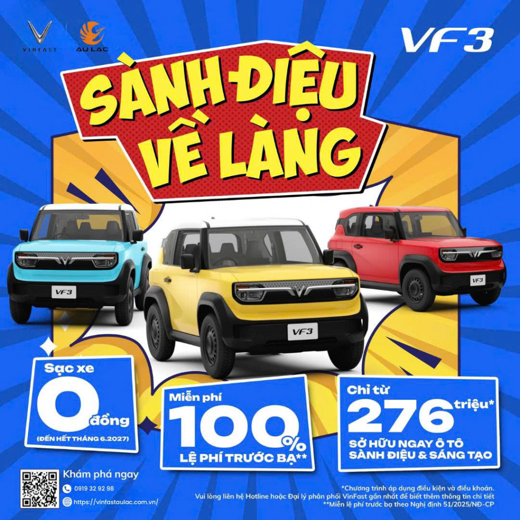 Giờ đây, VinFast VF 3 mang cả phong cách sành điệu và công nghệ xanh về tận làng quê – nơi mọi cung đường quen thuộc bỗng trở nên mới mẻ, hứng khởi hơn bao giờ hết! 🌿