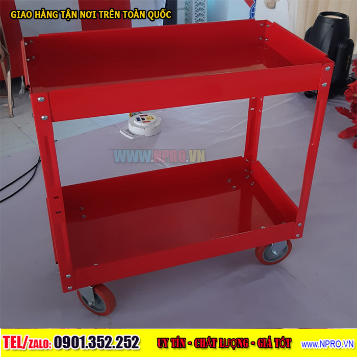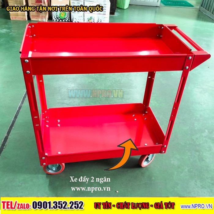 Xe đẩy 2 ngăn, Xe đẩy dụng cụ 2 tầng, 2 ngăn được sử dụng trong các nhà máy bảo trì, trạm bảo dưỡng máy móc, tiệm sửa xe máy, gara ô tô. Sản phẩm được dùng để đựng dụng cụ sửa chữa, dụng cụ cầm tay, đồ nghề xe máy, đồ nghề cơ khí, thiết bị gia đình.