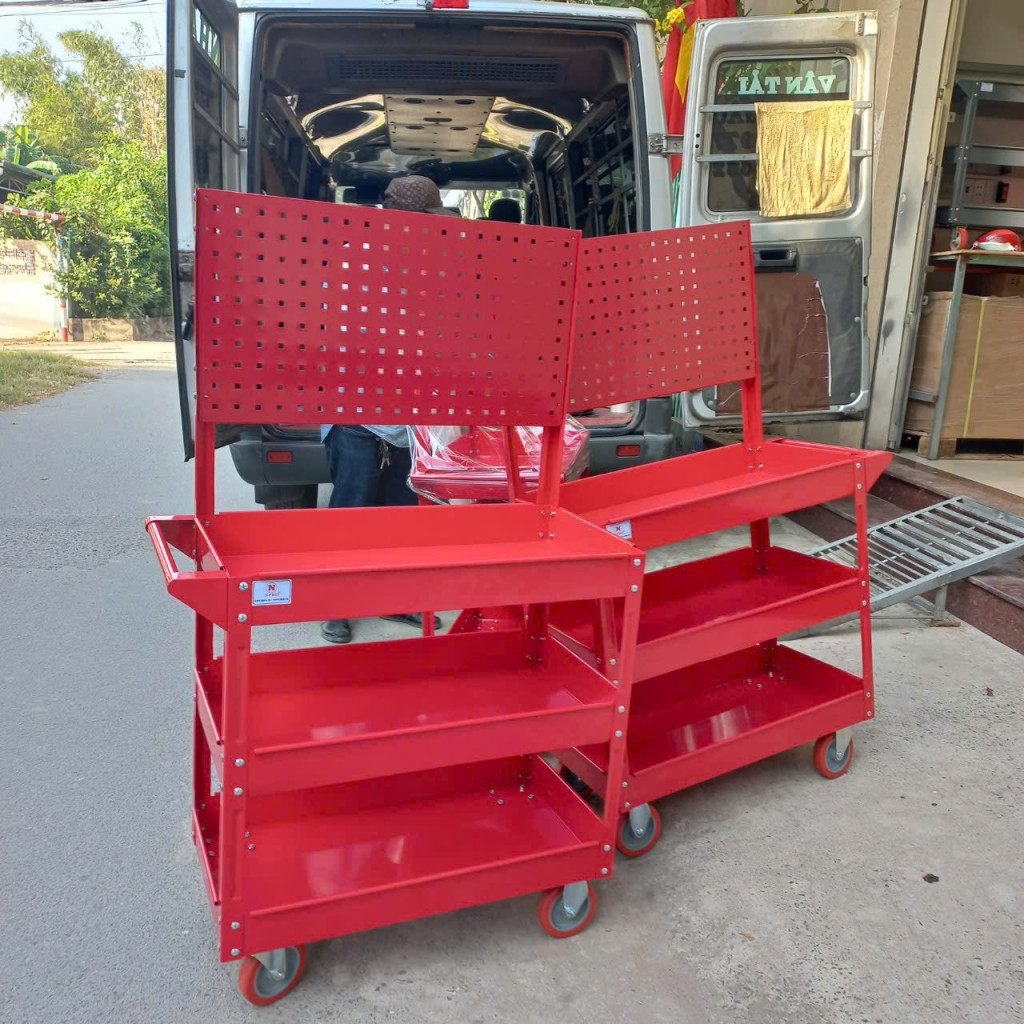 Xe đẩy 3 ngăn – bảng treo cơ khí, hay còn gọi xe đựng đồ nghề là dạng cơ bản tủ đựng đồ nghề với thiết kế rất đơn giản, tính linh hoạt cao. Sản phẩm được sử dụng phổ biến trong các tiệm sửa chữa xe máy, gara ô tô hay các xưởng sản xuất cơ khí nhà máy, xí nghiệp hoặc các hộ gia đình hiện nay.