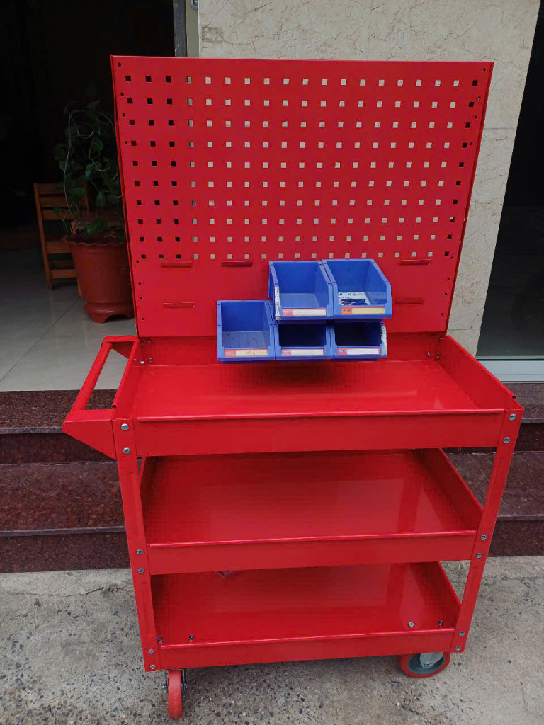 – Xe đẩy dụng cụ, xe đựng đồ nghề 3 ngăn kèm giá treo dụng cụ
