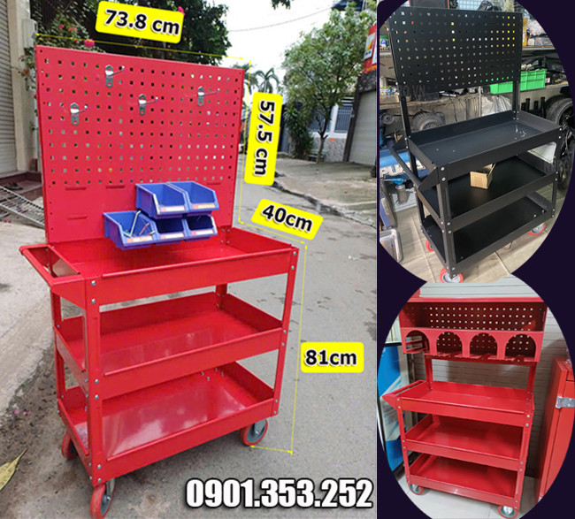 – Xe đẩy: Xe đẩy dụng cụ 3 ngăn, xe đẩy dụng cụ có ngăn kéo, xe đẩy dụng cụ có giá treo,..