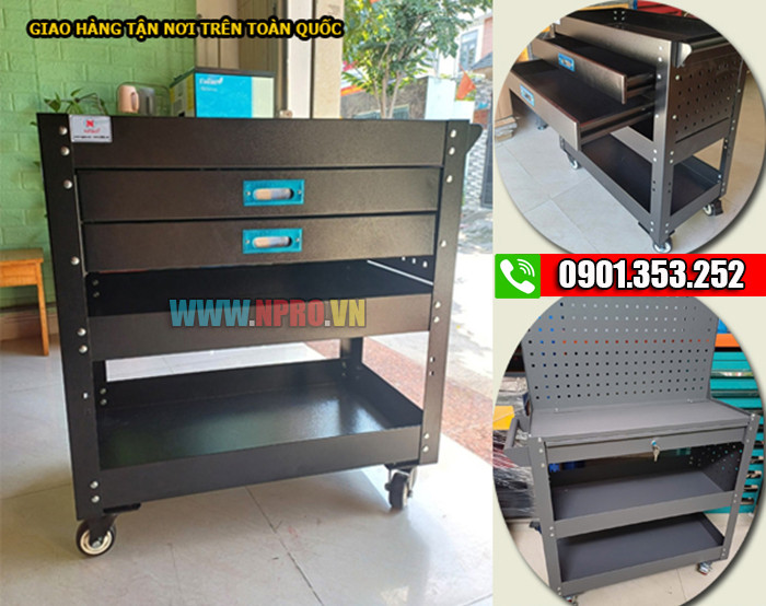 Xe đẩy đựng đồ nghề nhà xưởng gara - Xe đẩy 2 ngăn, 3 ngăn, 5 ngăn