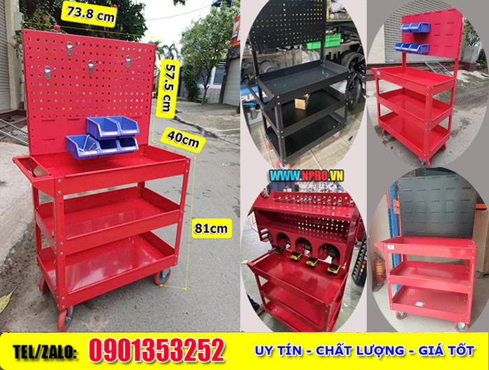 3. Xe đẩy kết hợp bảng treo dụng cụ