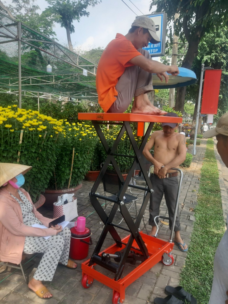 Bàn nâng thủy lực vận chuyển cây cảnh giá từ 4.950.000 đến 8.140.000 đồng