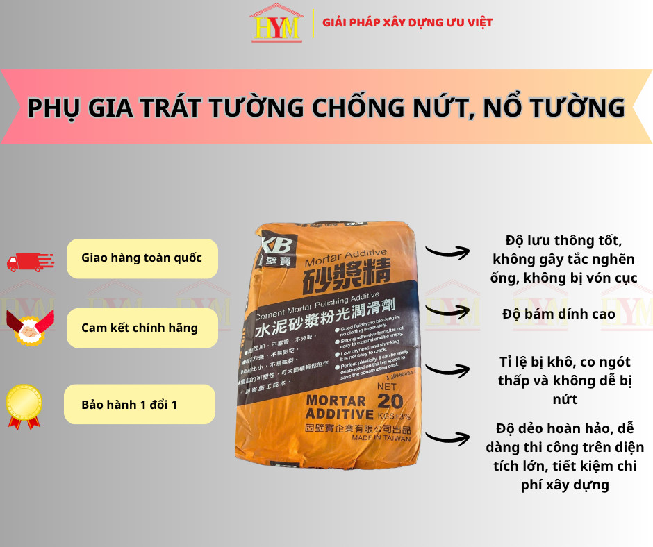 Bột phụ gia trát tường chống nứt, nổ tường nhập khẩu Đài Loan
