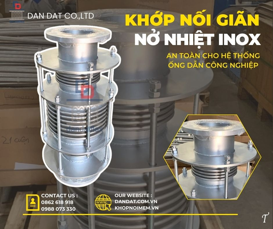 Dân Đạt cung cấp khớp giãn nở/ khớp giãn nở inox/bù trừ giãn nở nhiệt/ khớp giãn nở inox pasty - thiết kế đa dạng, chịu nhiệt – chịu áp cao, bảo hành kỹ thuật, CO-CQ đầy đủ. Sản phẩm được tin dùng tại hàng trăm công trình lớn trên toàn quốc.