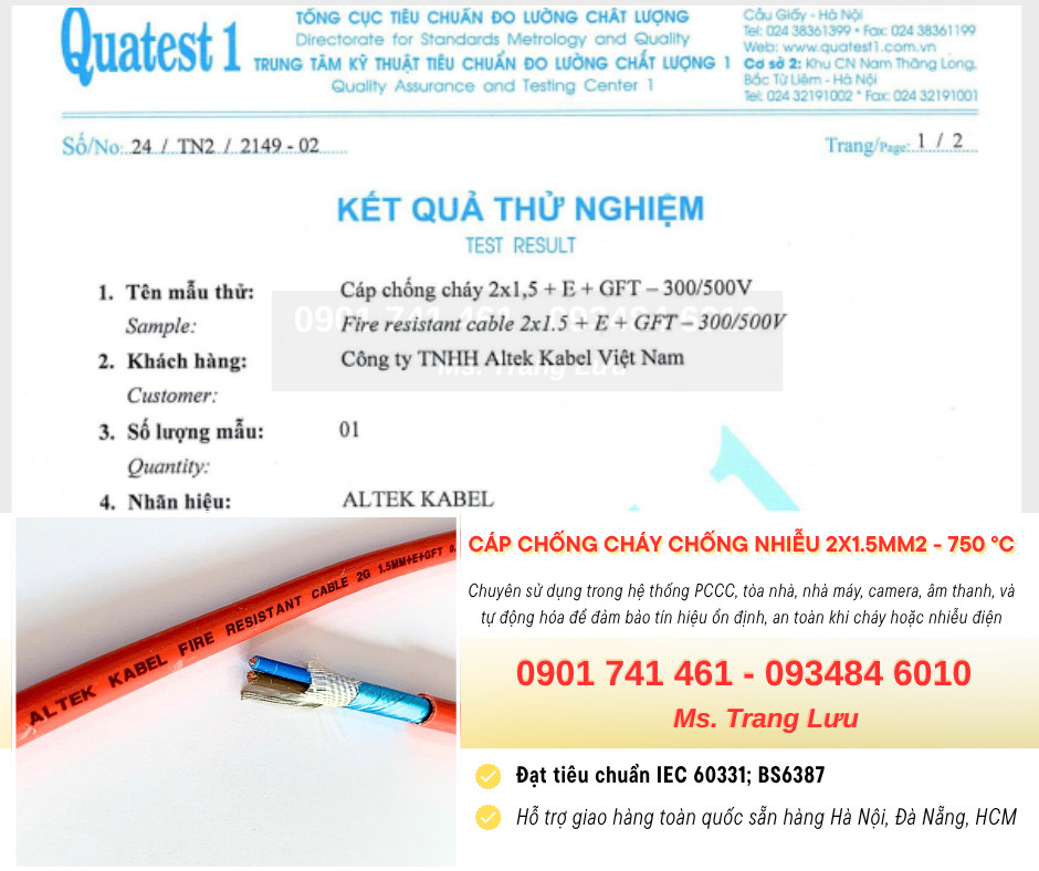 #CapChongChayChongNhieu #CapPCCC #AltekKabel #FR2x1.5 #CapChongChay750C #Fireresistantcable #IEC60331 #CapBaoChay #BS6387