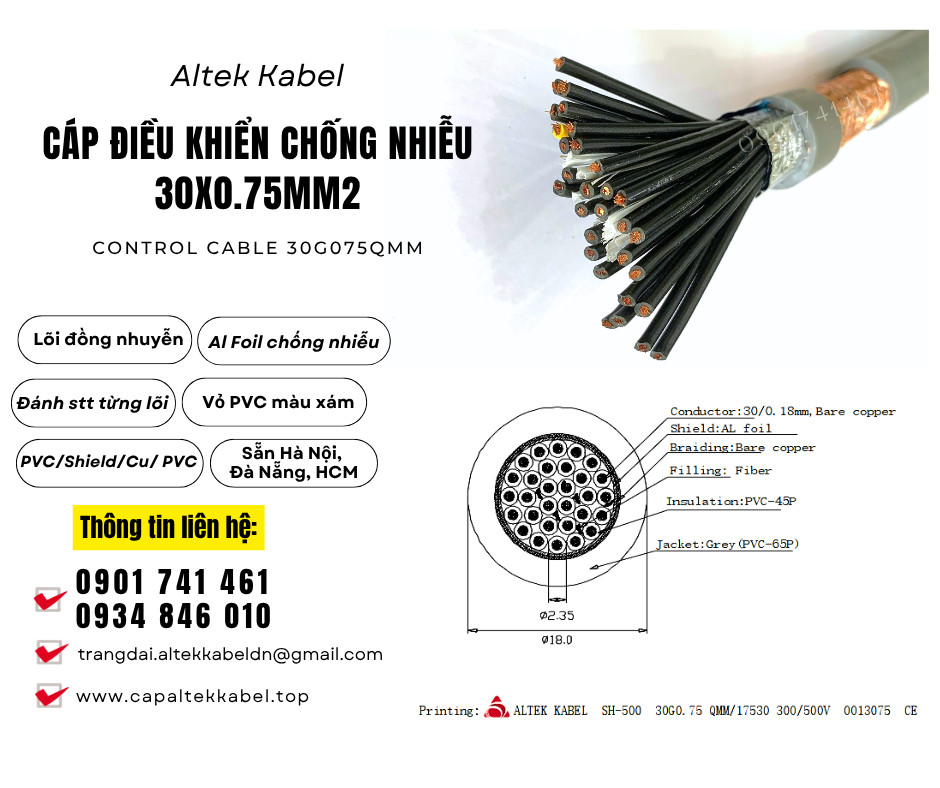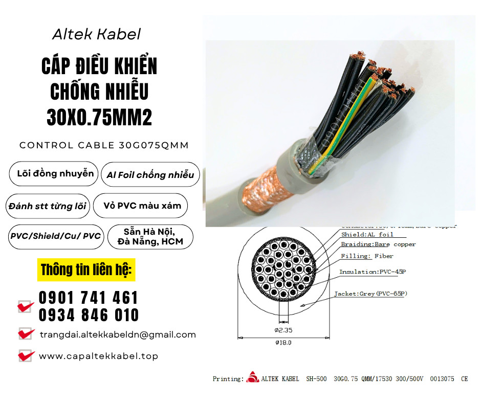 Cáp điều khiển, cáp tín hiệu Altek Kabel 30x0.75 chống nhiễu sẵn Đà Nẵng, Hà Nội, Sài Gòn