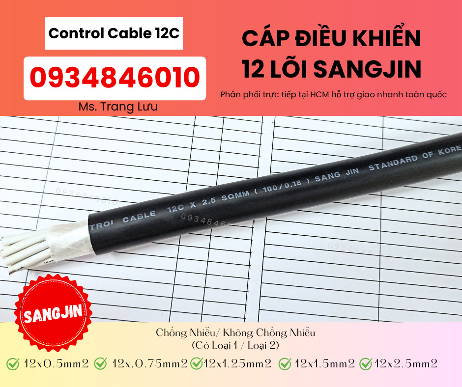 Cáp điều khiển Sangjin 12x0.5/12x0.75/12x1.25/12x1.5/12x2.5