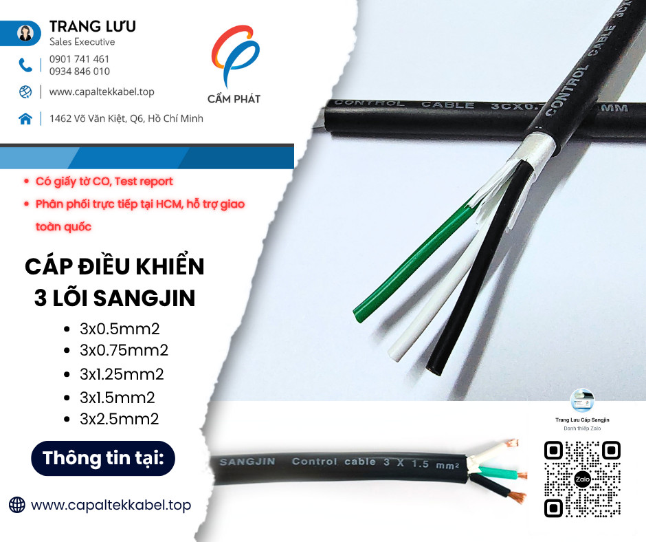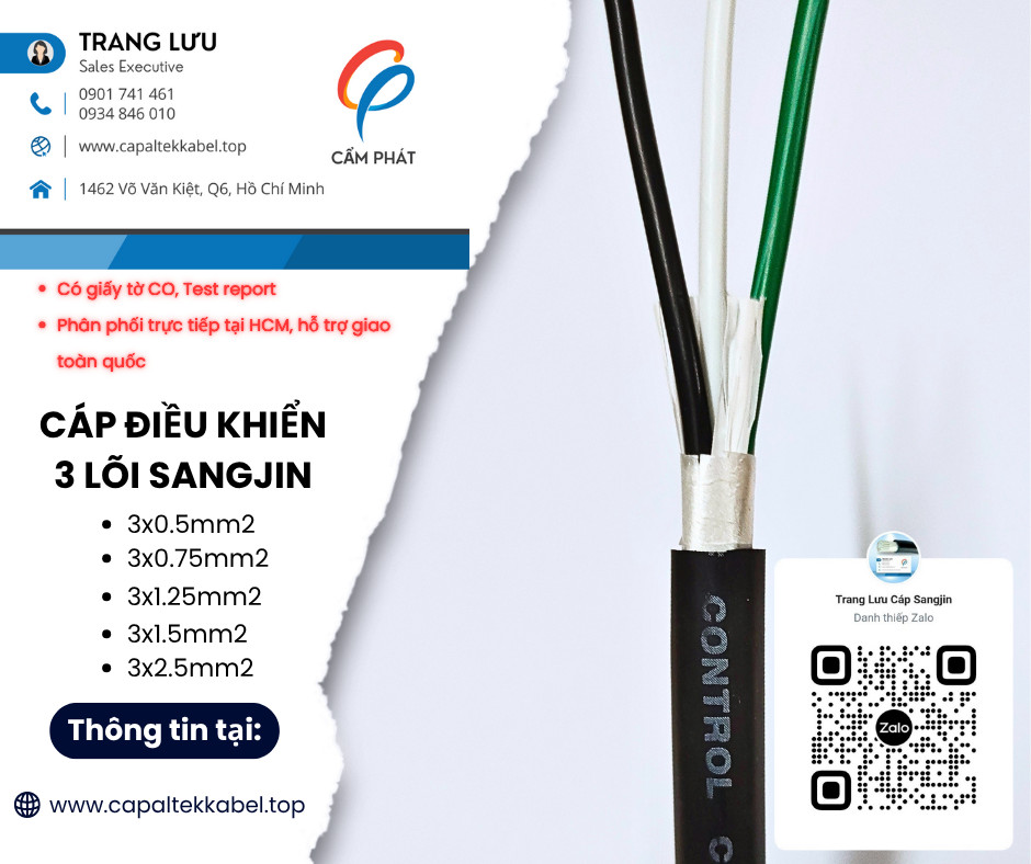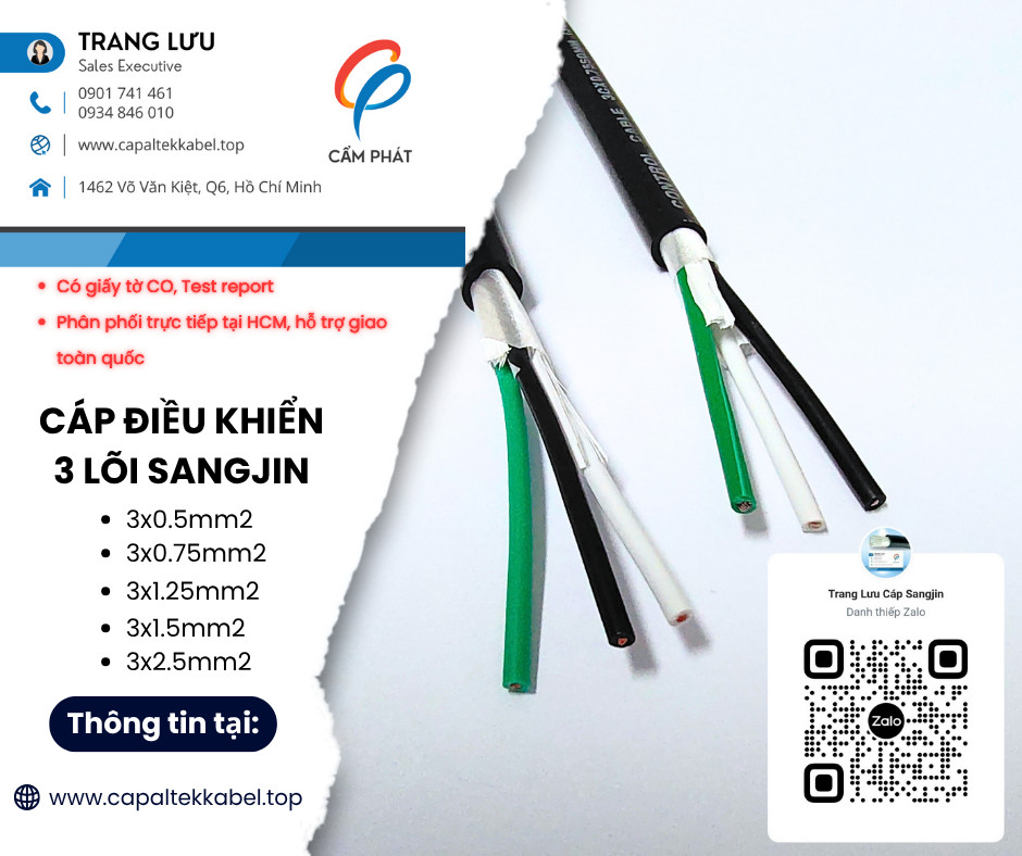 Cáp điều khiển Sangjin 3 lõi giá xưởng tại Hồ Chí Minh