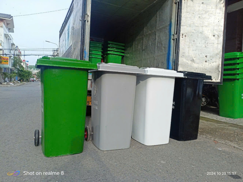Dung tích thùng tùy vào khối lượng chất thải phát sinh, từ 10 lít đến 250 lít.