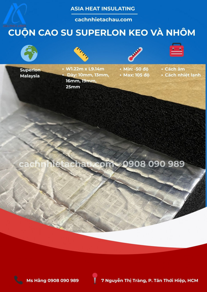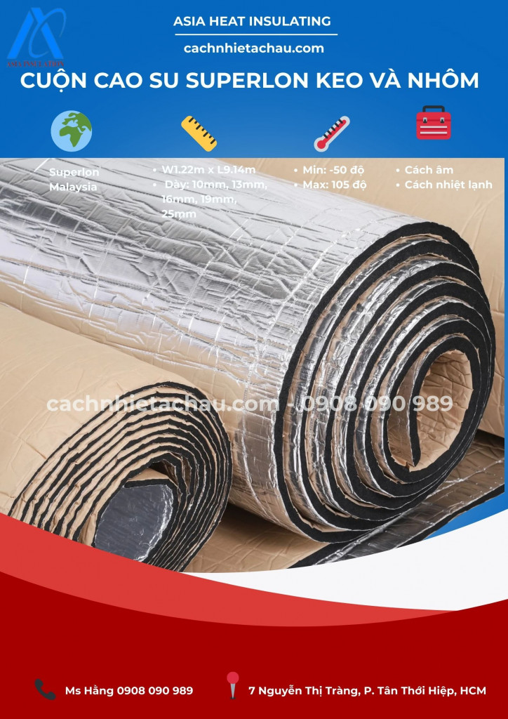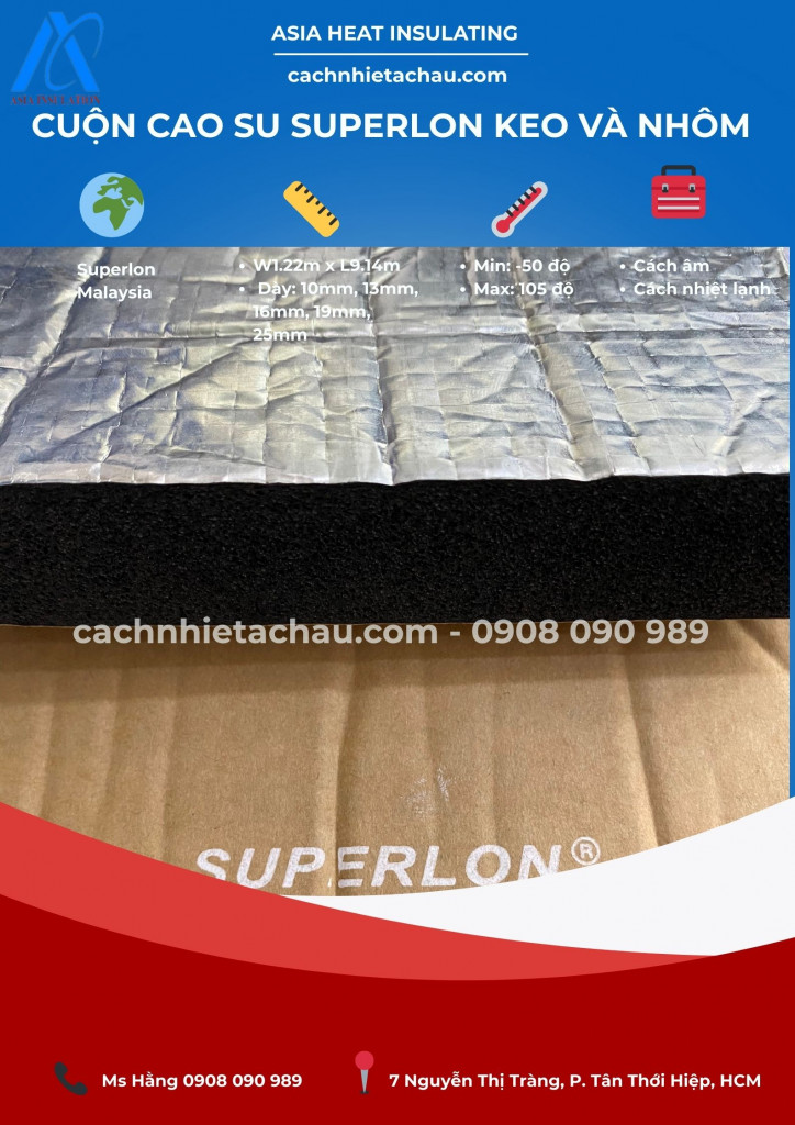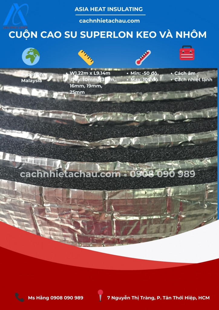 Cuộn cao su keo nhôm hiệu Superlon cách nhiệt lạnh