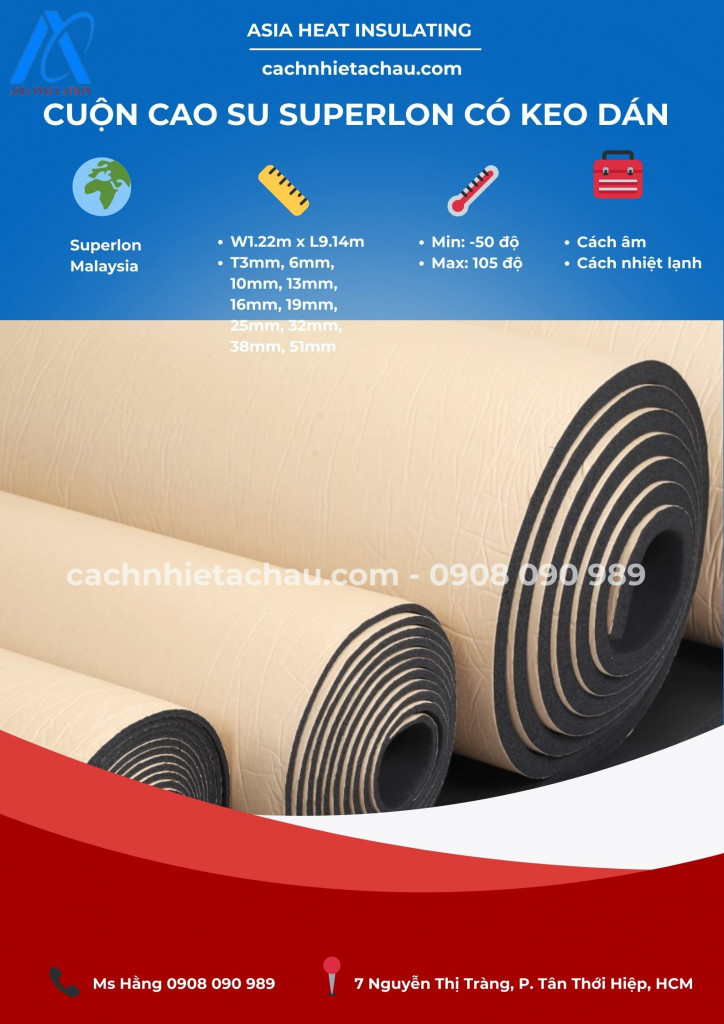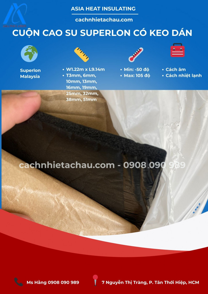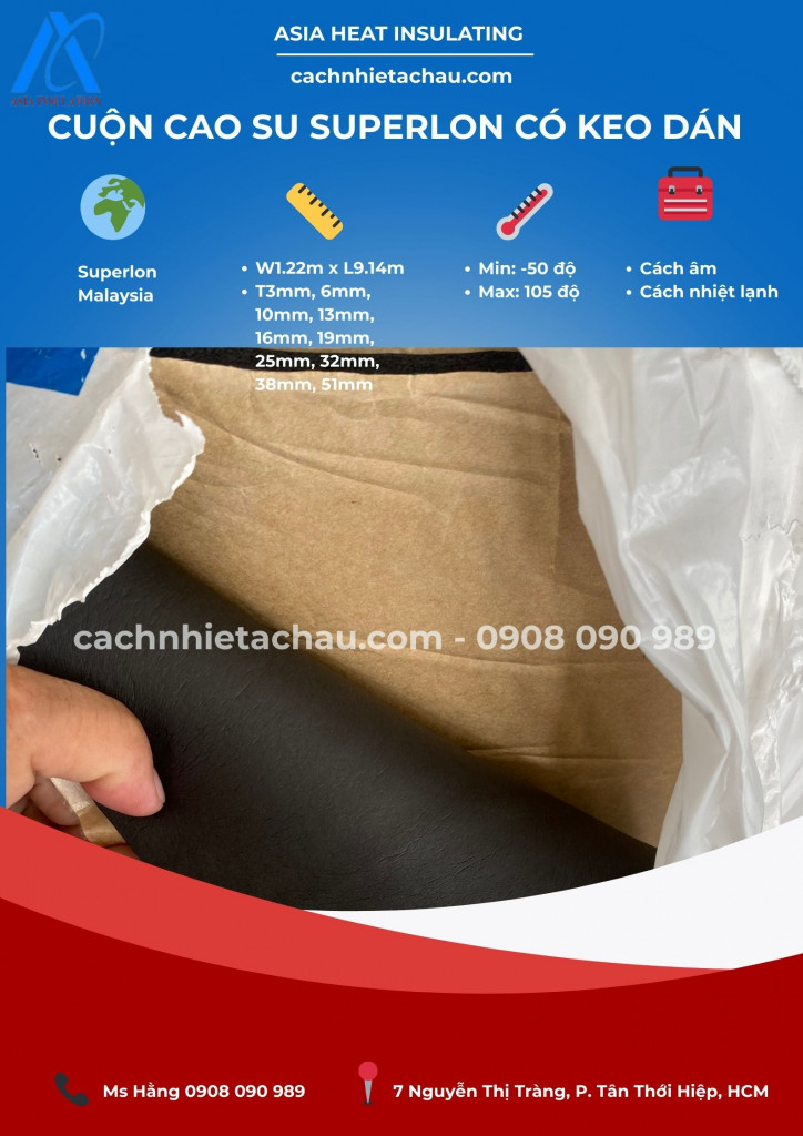 Cuộn cao su lưu hoá Superlon cách nhiệt lạnh loại có keo dán
