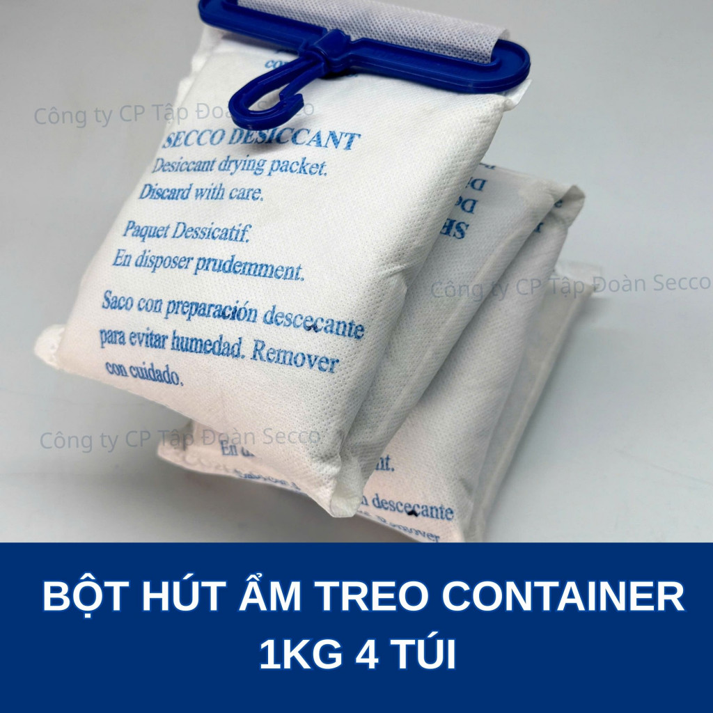 Tìm nguồn hàng Bột hút ẩm SECCO chính hãng giá sỉ tại Bình Dương? Bên em trực tiếp sản xuất dòng dây treo 1kg (quy cách dây 4 túi nhỏ) chuyên dụng cho vận tải biển: