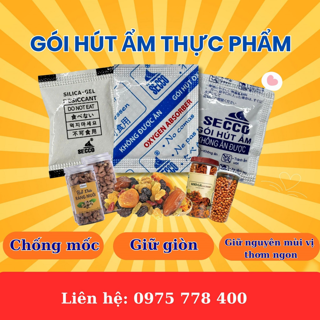 #GóiHútẨmThựcPhẩm #BảoQuảnBánhMứt #SECCO #Desiccant #FoodGrade #HútẨmAnToàn
