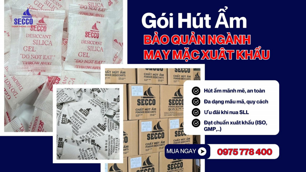 Gói hút ẩm Silicagel Secco Gói Hút Ẩm Silicagel 1g 2g Bảo quản cho may mặc, quần áo xuất khẩu, ̣ quần áo, giày dép, túi xách xuất khẩu,...