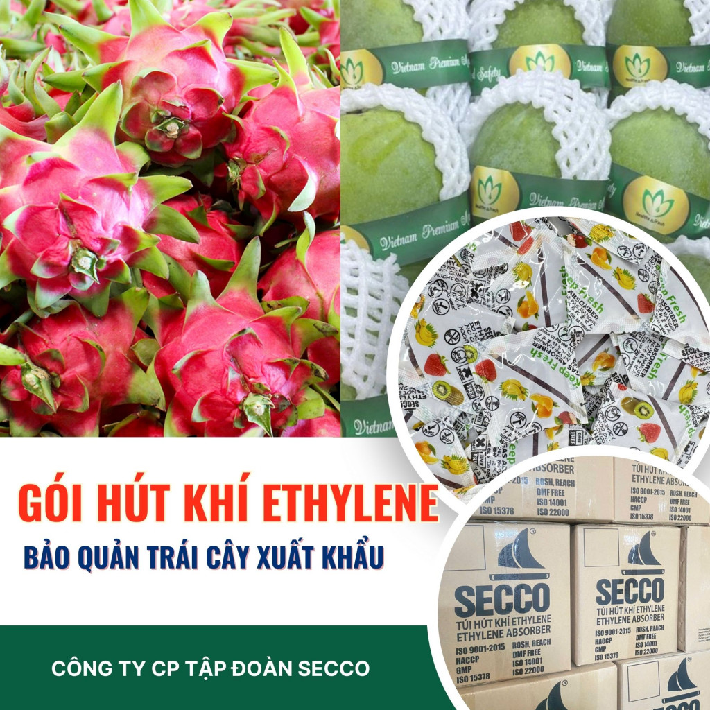 Trái cây xuất khẩu luôn đối mặt nguy cơ chín nhanh -mềm trái - giảm giá trị khi vận chuyển? Giải pháp chính là gói Hút Ethylene Keep Fresh Secco 5gam, giúp giữ tươi lâu cho trái cây: cho xoài, thanh long, chuối, dâu tây,... và nhiều loại nông sản khác.
