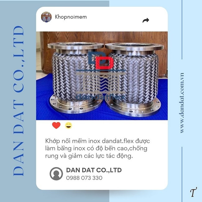 Khớp nối mềm inox Dân Đạt là phụ kiện quan trọng trong hệ thống đường ống, giúp giảm rung lắc, giãn nở nhiệt và bảo vệ thiết bị khỏi áp lực. Sản phẩm này được làm từ inox cao cấp, đảm bảo độ bền và chống ăn mòn vượt trội. Khớp nối mềm inox 304, khớp nối mềm inox 316 là hai loại phổ biến được sử dụng trong nhiều lĩnh vực khác nhau, đặc biệt là khớp nối mềm nối bích giúp lắp đặt dễ dàng hơn trong hệ thống đường ống.