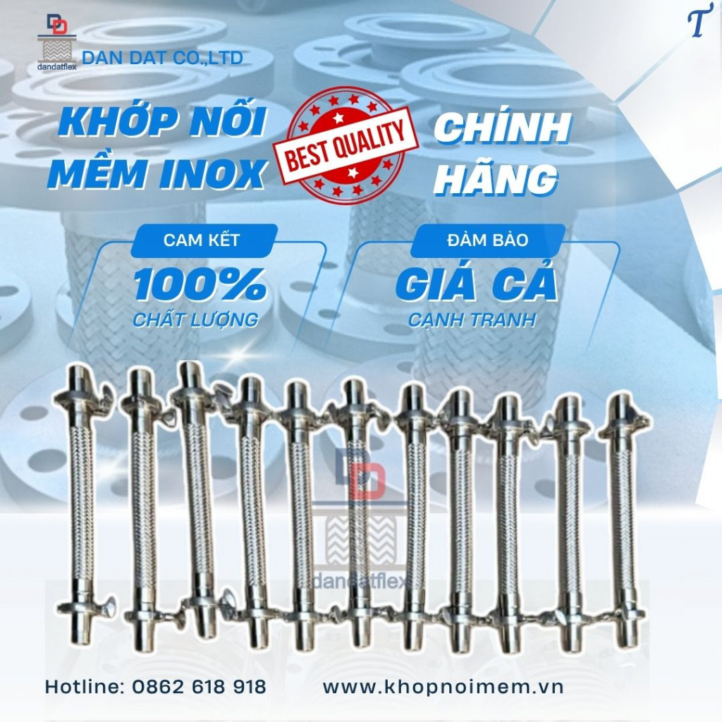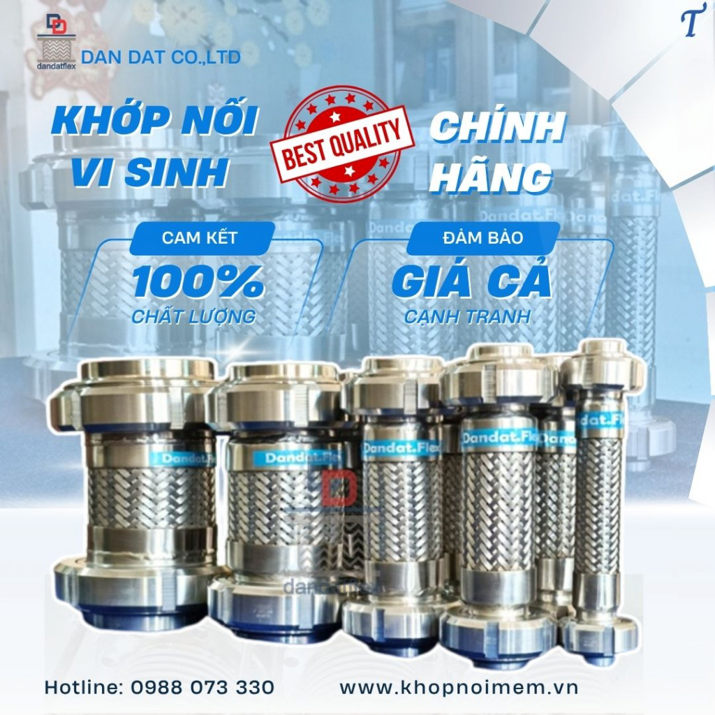 Dân Đạt cung cấp khớp nối mềm nối ren – khớp nối ren kim loại – khớp nối chống rung – khớp nối mềm rắc co vi sinh chất lượng cao, đạt tiêu chuẩn ISO, đảm bảo độ bền và khả năng chịu lực tốt. Liên hệ ngay để được tư vấn và báo giá!
