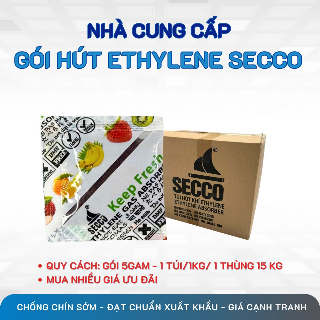 Sử dụng gói hút khí Ethylene Secco 5g – tiêu chuẩn cho nông sản xuất khẩu.