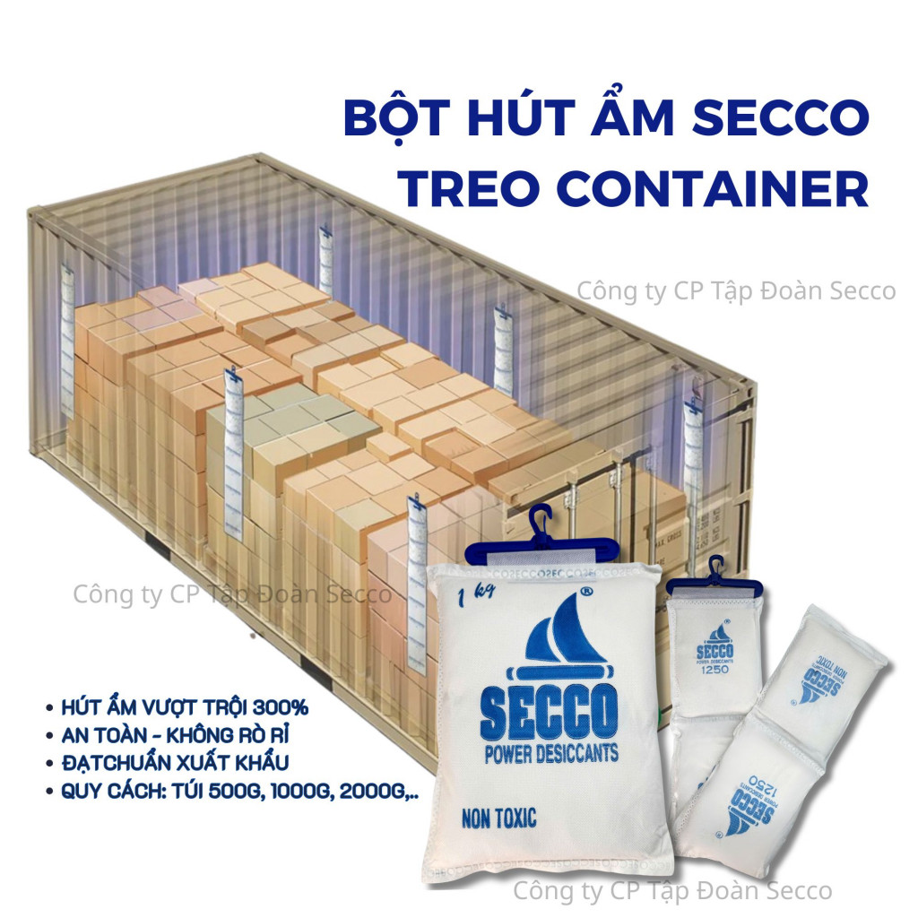 Tại Việt Nam, Bột hút ẩm Secco Treo Container là giải pháp chống ẩm hàng đầu.