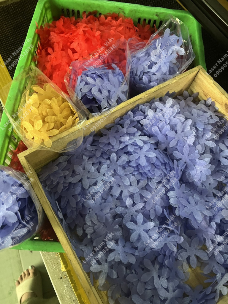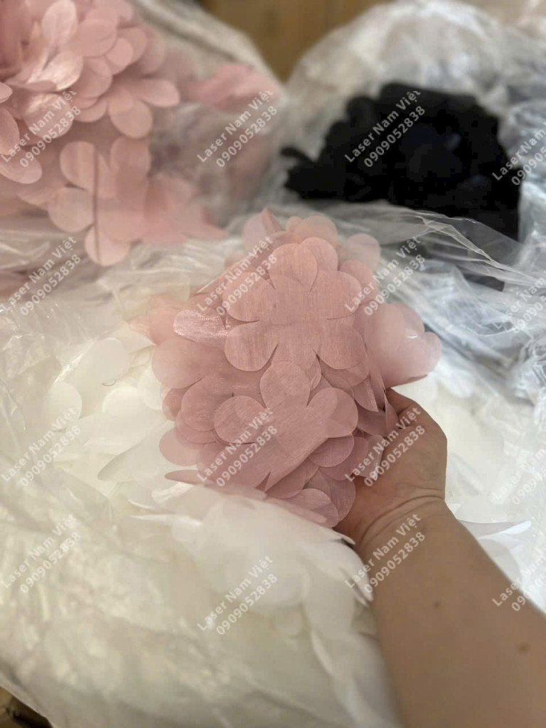 NHẬN CẮT HOA VẢI BẰNG CÔNG NGHỆ LASER – SẮC NÉT, TINH TẾ, KHÔNG BÁM CHÁY