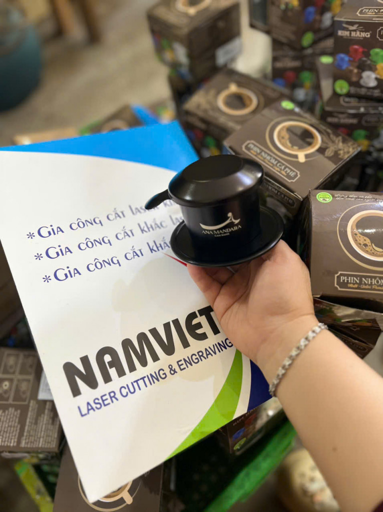 Laser Nam Việt chuyên khắc laser logo, thương hiệu, thông điệp lên phin cà phê inox – món quà tặng doanh nghiệp độc đáo, sang trọng và đậm dấu ấn riêng.