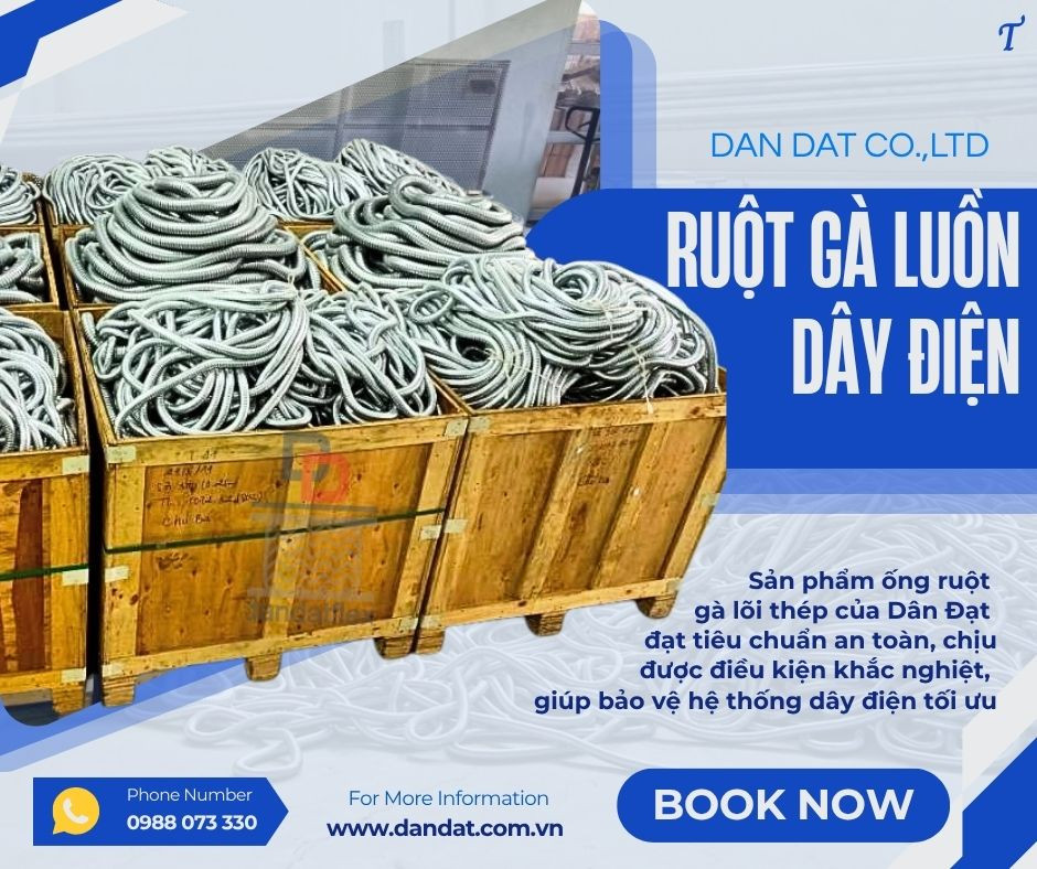 Dan Dat Co.,LTD - Chuyên sản xuất và phân phối ống ruột gà lõi thép, ống ruột gà lõi thép bọc nhựa, ống ruột gà lõi thép bọc lưới, ống ruột gà lõi thép bọc nhựa bọc lưới, ống ruột gà lõi thép bọc nhựa mềm PVC, ống luồn dây điện, ống ruột lõi thép bọc nhựa chống cháy nổ, ống ruột gà lõi thép chống thấm nước và dầu,..Thường được dùng để luồn dây điện trong các công trình thi công điện, tự động hóa, tủ điều khiển, dây chuyền tự động,...Dùng được cả trong nhà và ngoài trời.