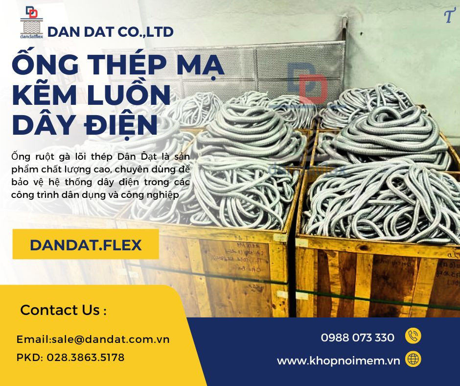Dan Dat Co.,LTD - Nhà sản xuất chuyên cung cấp: Ống ruột gà lõi thép - conduit steel flexible, Ống thép luồn dây điện - electrical steel conduit, Ống inox luồn dây điện - stainless steel conduit, Ống luồn dây điện pvc - conduit electrical pvc, Ống luồn dây điện điện và phụ kiện, Ống ruột gà lõi thép bọc inox chống cháy nổ, Ống ruột gà lõi thép bọc nhựa chống cháy nổ, Ống ruột gà thép chống thấm nước và dầu, Ống luồn dây điện bọc nhựa PVC, Đầu nối ống luồn dây điện DGJ, Đầu nối ống luồn dây điện DKJ, Đầu nối ống luồn dây điện DPJB, Đầu nối ống luồn dây điện DPNB, Đầu nối ống luồn dây điện EMTCT, Đầu nối ống luồn dây điện EMTCL, Đầu nối ống luồn dây điện EMTCD,...Hàng có sẵn số lượng lớn, giá cạnh tranh