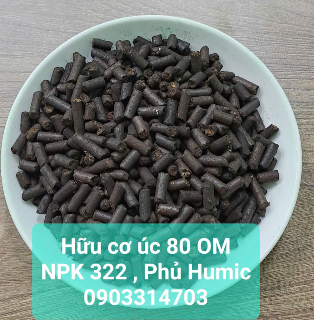 Phân bón hữu cơ viên nén công nghệ úc 80 OM , NPK 322,Humic 5%