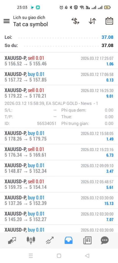 Hệ thống Robot Trading XAUUSD tiếp tục vận hành ổn định, xử lý lệnh nhanh và chính xác trong phiên giao dịch mới nhất. 📈
