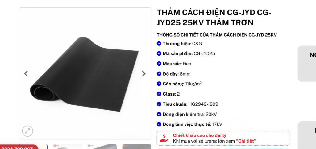 THÔNG SỐ CHI TIẾT CỦA THẢM CÁCH ĐIỆN CG-JYD 25KV