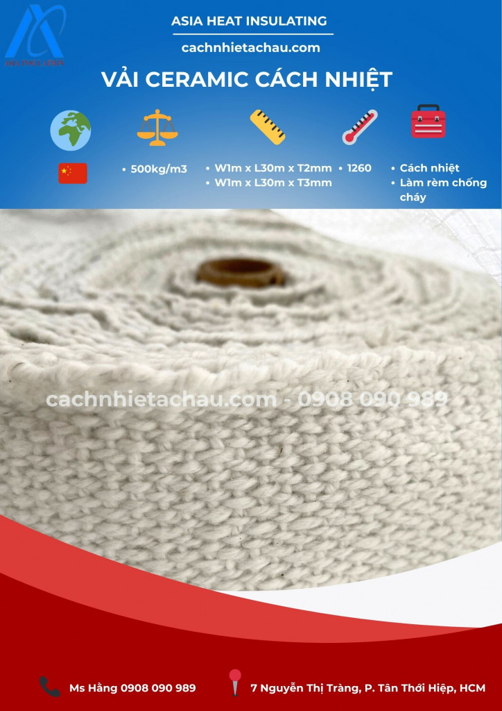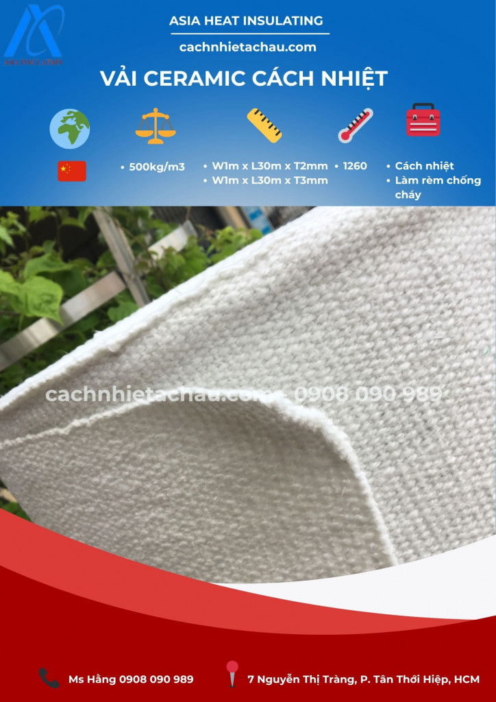Vải Ceramic cách nhiệt, chống cháy 1260 độ C