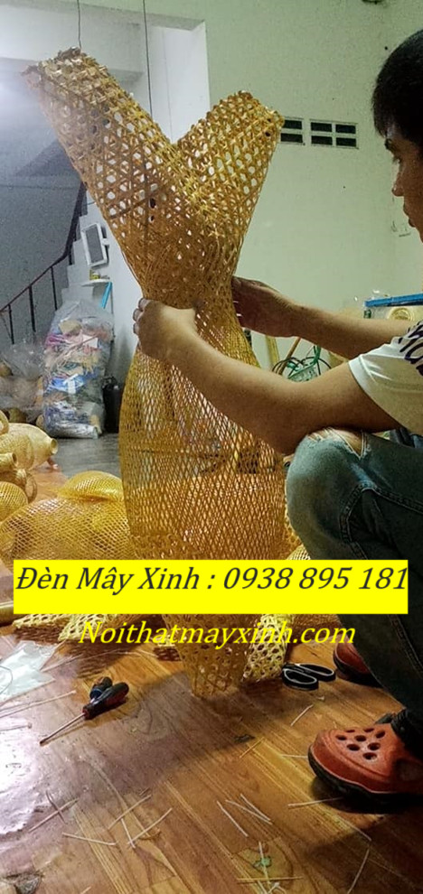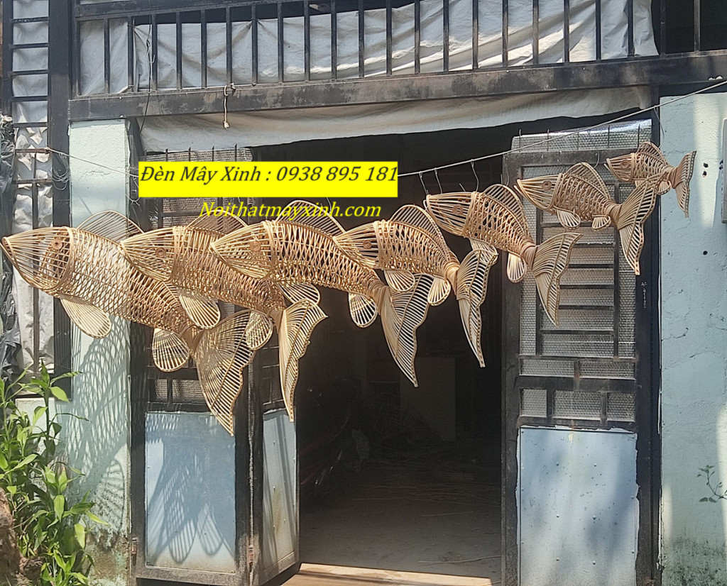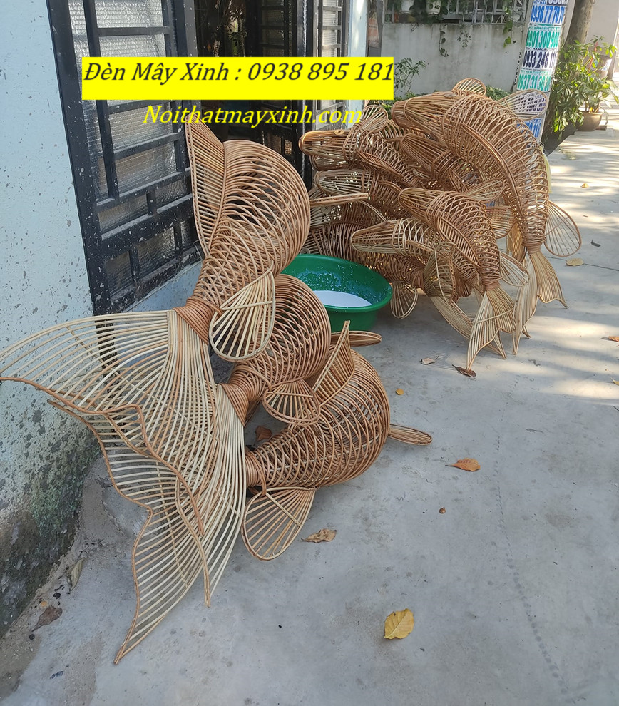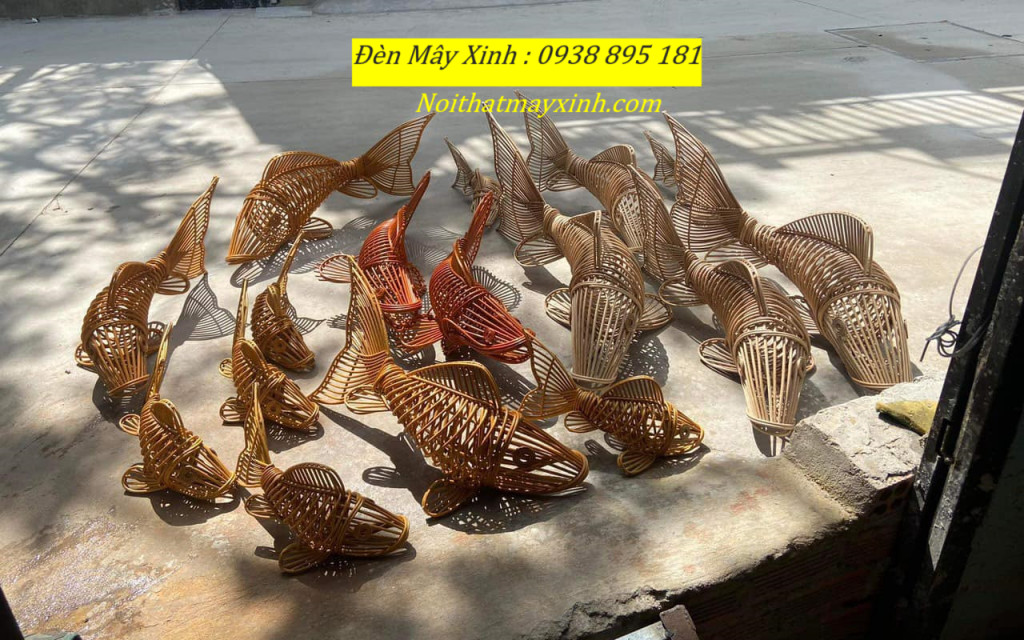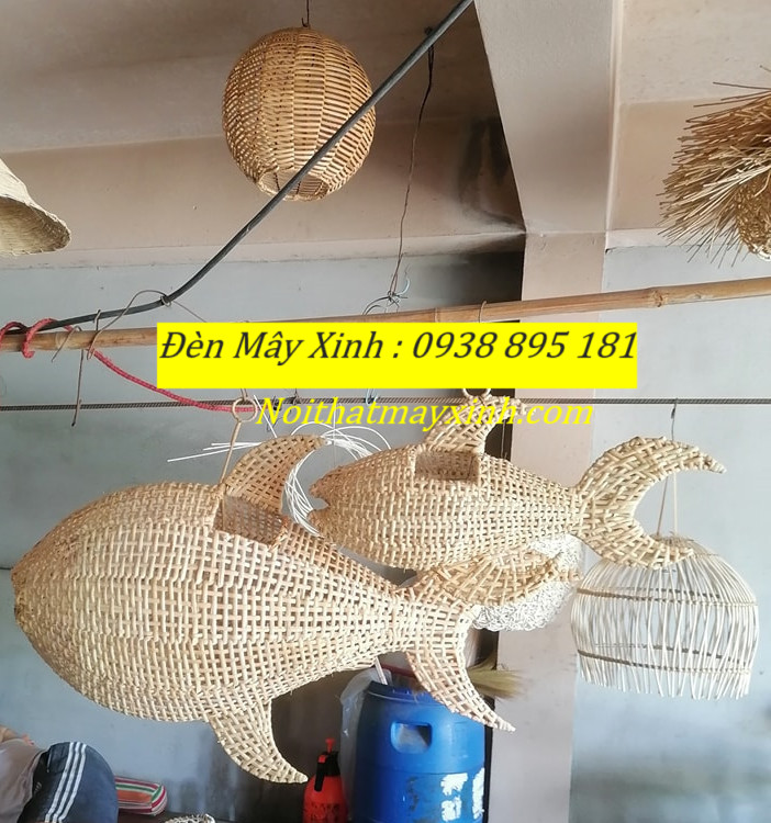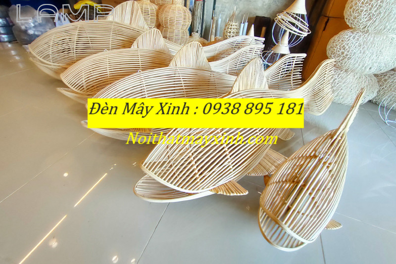 Xưởng làm đèn mây hình cá độc đáo, đèn cá bằng mây tre đan