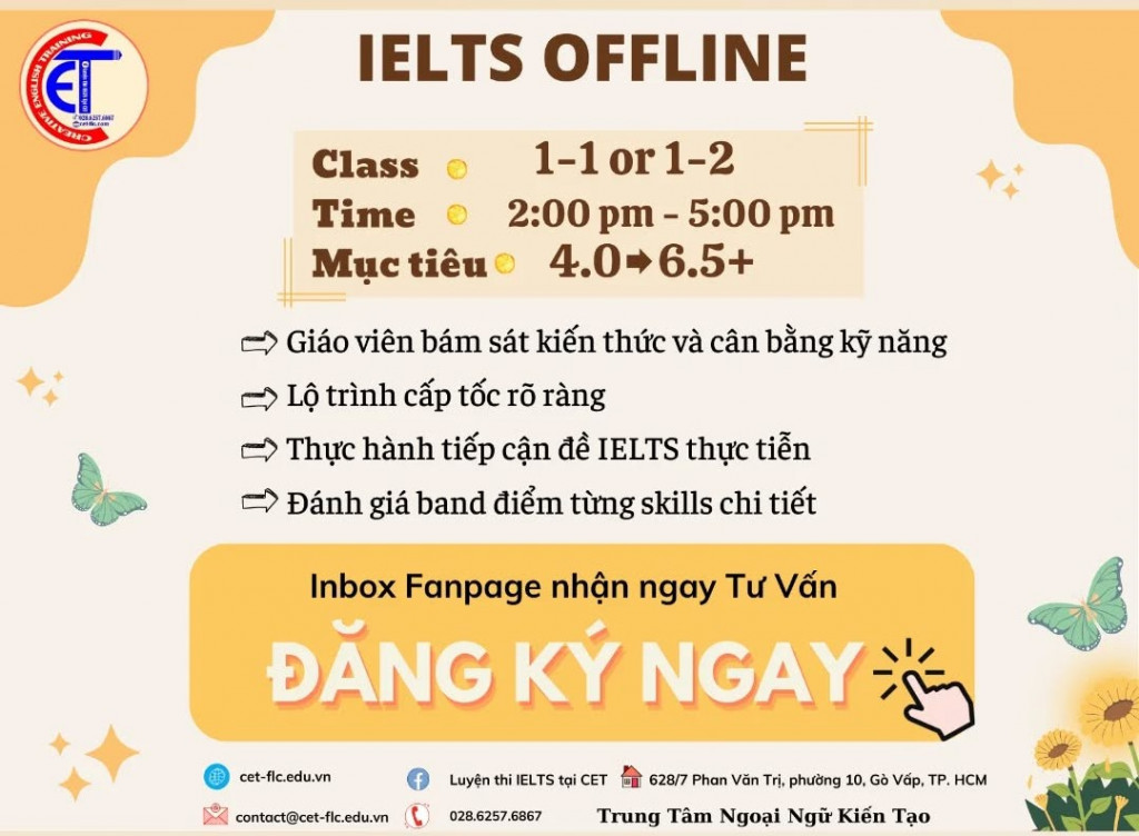 INBOX Tư Vấn 🛎 🛎 Khóa Học tại Fanpage: Luyện Thi IELTS Tại CET
