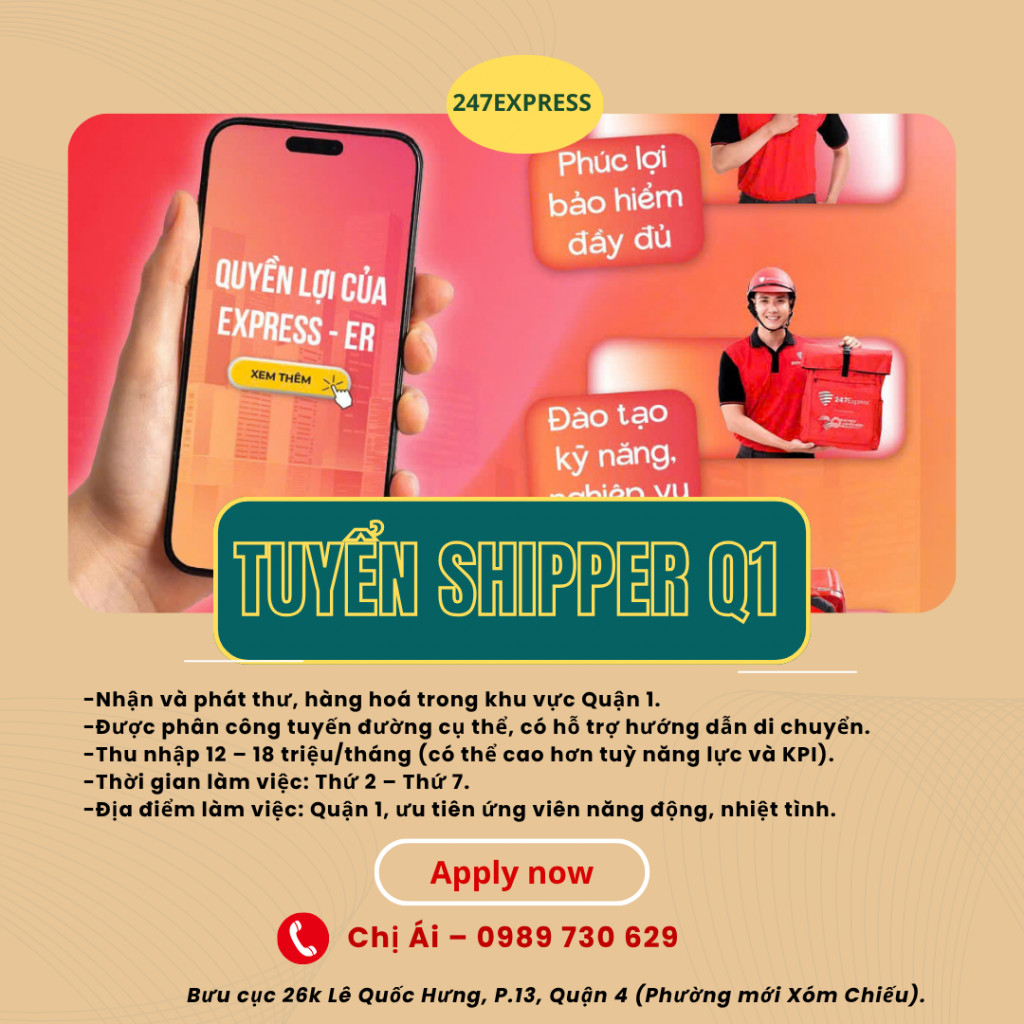 📢 247EXPRESS TUYỂN NHÂN VIÊN GIAO NHẬN HÀNG BẰNG XE MÁY – QUẬN 1