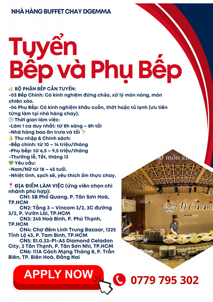 🔥 NHÀ HÀNG BUFFET CHAY DGEMMA TUYỂN DỤNG GẤP 🔥