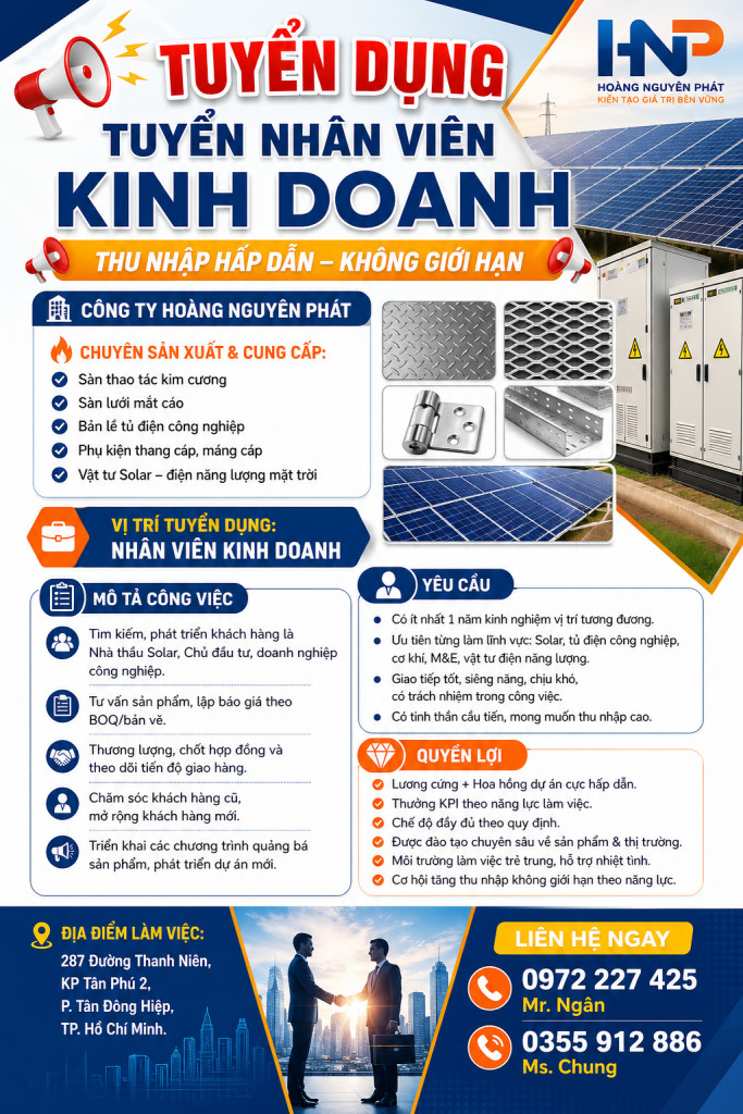 CÔNG TY HOÀNG NGUYÊN PHÁT TUYỂN NHÂN VIÊN KINH DOANH