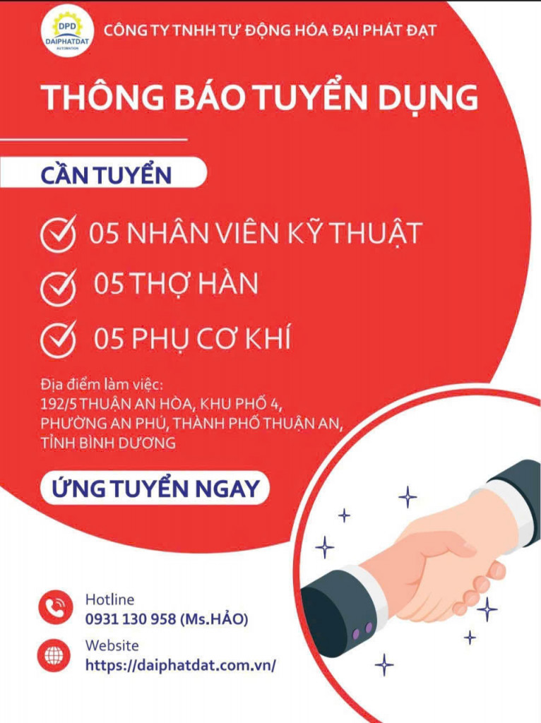 Quý vị đang xem nội dung tin rao "CÔNG TY TNHH TỰ ĐỘNG HOÁ ĐẠI PHÁT ĐẠT CẦN TUYỂN THỢ HÀN THỜI VỤ" - Mã tin 1655998. Mọi thông tin, nội dung liên quan tới tin rao này là do người đăng tin đăng tải và chịu trách nhiệm. Raovat321.com luôn cố gắng để các thông tin được hữu ích nhất cho quý vị tuy nhiên Raovat321.com không đảm bảo và không chịu trách nhiệm về bất kỳ thông tin, nội dung nào liên quan tới tin rao này. Trường hợp phát hiện nội dung tin đăng không chính xác, Quý vị hãy bấm nút Báo vi phạm để thông báo và cung cấp thông tin cho Ban quản trị RaoVat321.com.