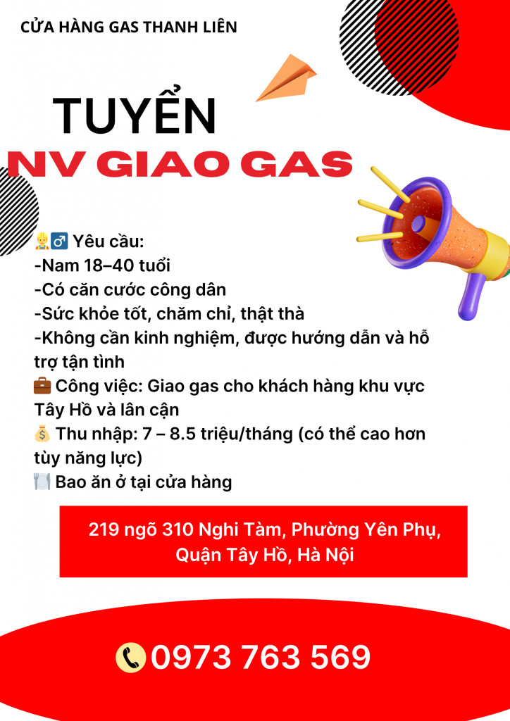 🔥 CỬA HÀNG GAS THANH LIÊN TUYỂN GẤP NHÂN VIÊN NAM GIAO GAS 🔥
