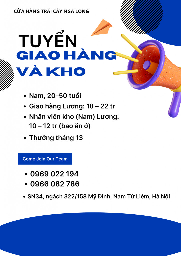 Cửa hàng trái cây Nga Long tuyển dụng nam ship trái cây và nv kho