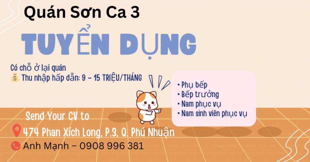 Quý vị đang xem nội dung tin rao "[GẤP, BAO ĂN Ở] PHỤ BẾP, BẾP TRƯỞNG QUẬN PHÚ NHUẬN" - Mã tin 1681372. Mọi thông tin, nội dung liên quan tới tin rao này là do người đăng tin đăng tải và chịu trách nhiệm. Raovat321.com luôn cố gắng để các thông tin được hữu ích nhất cho quý vị tuy nhiên Raovat321.com không đảm bảo và không chịu trách nhiệm về bất kỳ thông tin, nội dung nào liên quan tới tin rao này. Trường hợp phát hiện nội dung tin đăng không chính xác, Quý vị hãy bấm nút Báo vi phạm để thông báo và cung cấp thông tin cho Ban quản trị RaoVat321.com.