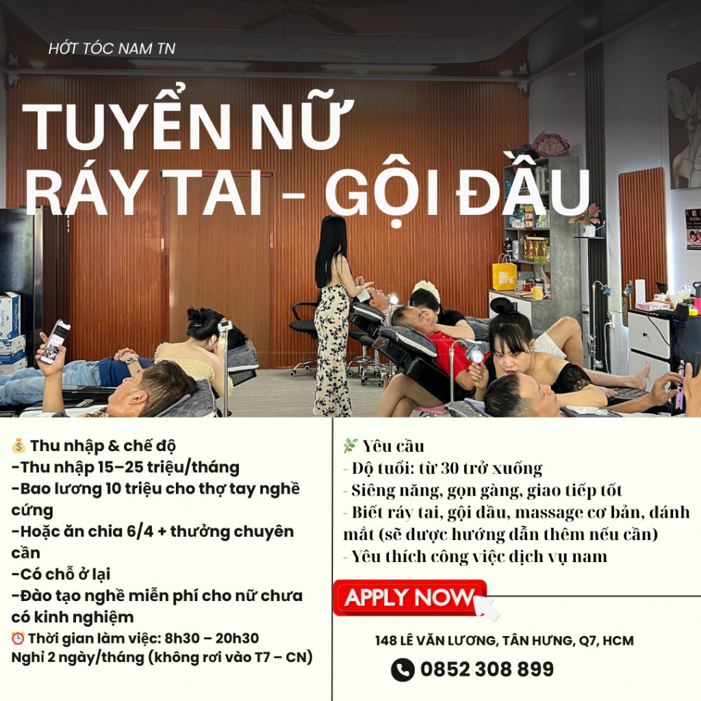 ⭐ Tuyển gấp 2 bạn nữ (ưu tiên) làm dịch vụ nam: ráy tai – gội đầu