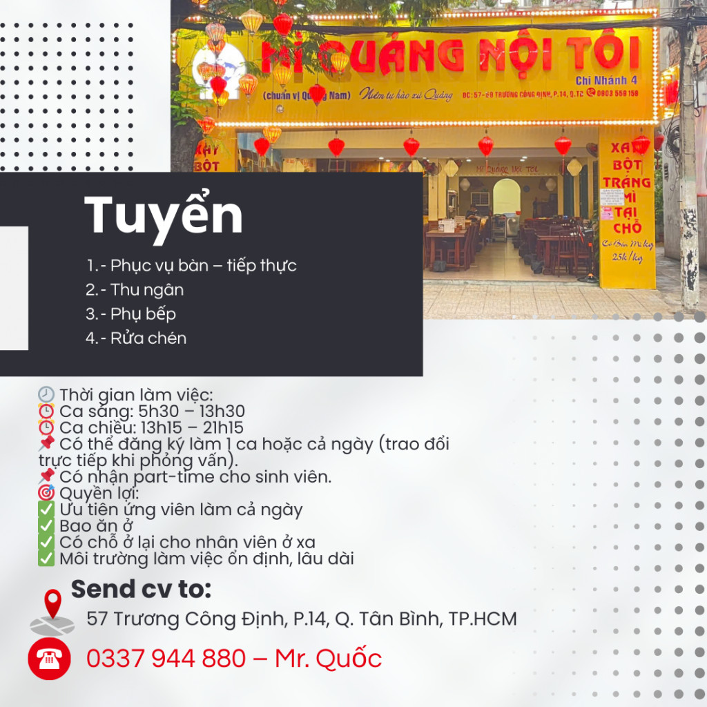 🌟 [TÂN BÌNH] – MỲ QUẢNG NỘI TÔI TUYỂN NHÂN VIÊN 🌟