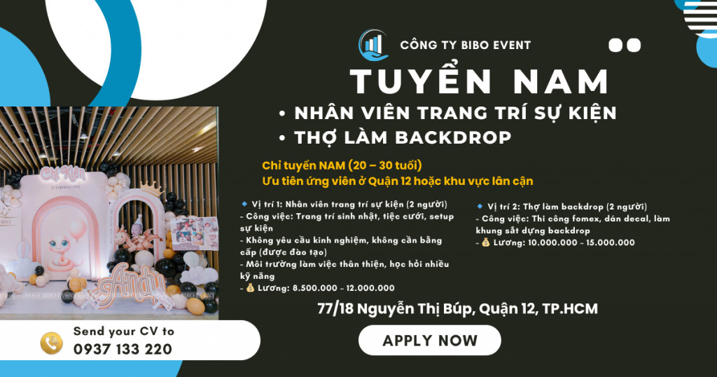 Công ty Bibo Event cần tuyển nhân sự làm việc tại Quận 12: