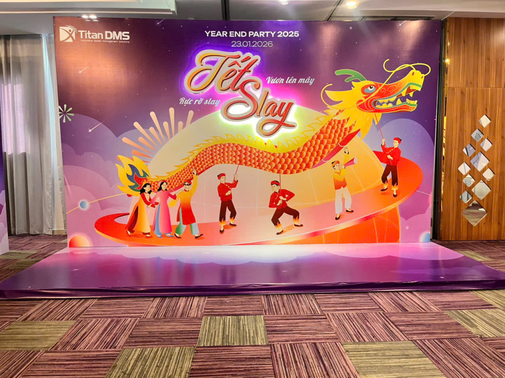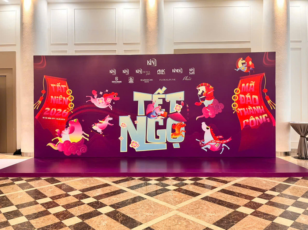 - Công việc: Thi công fomex, dán decal, làm khung sắt dựng backdrop