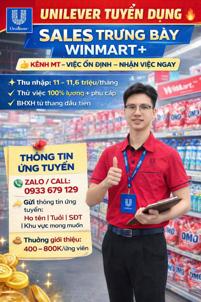 Đi 6-8 cửa hàng win+ giờ HC 8h-17h, nghỉ 1 ngày thường, chăm sóc trưng bày chụp ảnh báo cáo hàng hóa, quầy kệ, kiểm tồn, chuyển giao hàng hóa....