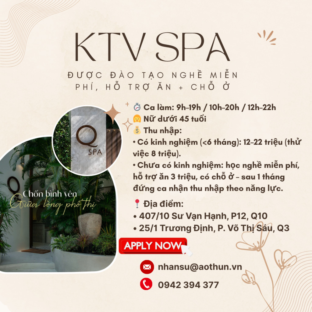 Quý vị đang xem nội dung tin rao "QSPA TUYỂN KTV SPA – CÓ KINH NGHIỆM VÀ KHÔNG YÊU CẦU KINH NGHIỆM" - Mã tin 1660743. Mọi thông tin, nội dung liên quan tới tin rao này là do người đăng tin đăng tải và chịu trách nhiệm. Raovat321.com luôn cố gắng để các thông tin được hữu ích nhất cho quý vị tuy nhiên Raovat321.com không đảm bảo và không chịu trách nhiệm về bất kỳ thông tin, nội dung nào liên quan tới tin rao này. Trường hợp phát hiện nội dung tin đăng không chính xác, Quý vị hãy bấm nút Báo vi phạm để thông báo và cung cấp thông tin cho Ban quản trị RaoVat321.com.