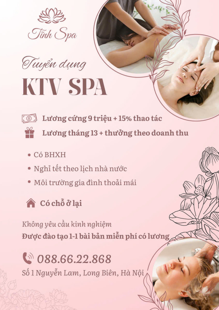 TĨNH SPA tuyển KTV lĩnh vực dưỡng sinh làm ở Long Biên Hà Nội